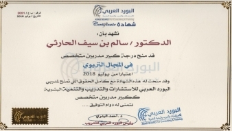 ÊåäìÁ ÇÏÇÑÉ ÇáÈæÑÏ ÇáÚÑÈí ááÇÓÊÔÇÑÇÊ æÇáÊÏÑíÈ æÇáÊäãíÉ ÇáÈÔÑíÉ æßÇÝÉ ÇáÇÚÖÇÁ ÇáãäÊÓÈíä ÇáÏß澄 / ÓÇáã Èä ÓíÝ ÇáÍÇÑËí ãä ÃÈäÇÁ ÓáØäÉ ÚãÇä ÈãäÇÓÈÉ ÊÑÝÚå æäíáå ÏÑÌÉ ßÈíÑ ãÏÑÈíä ãÊÎÕÕ Ýí ÇáãÌÇá ÇáÊÑÈæí æÐáß ÈÚÏ ÇÓÊíÝÇÆå ßÇÝÉ ÇáÔÑæØ ÇáãåäíÉ æÇáÇßÇÏíãíÉ Ýí ÇáÊÑÞí áäÝÓ ÇáÊÎÕÕ .. æÍÕæáå Úáì ÏÑÌÉ ÇáÏßÊæÑÇå Ýí ÇáÝáÓÝÉ ÇáÊÑÈæíÉ ãä ÇáããáßÉ ÇáãÛÑÈíÉ ...